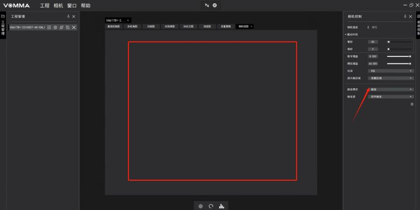• 此时可以点击 窗口 -> 相机控制 然后设置 触发模式 后方的下拉框内容为 连续采集;
